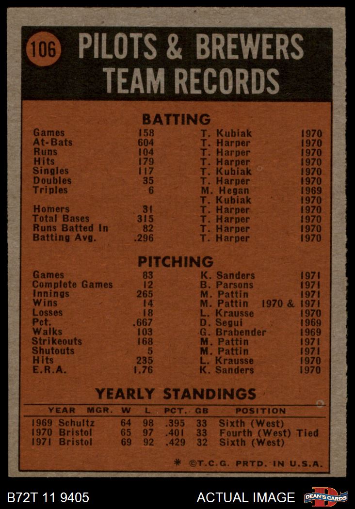 1972 Topps #106 Brewers Team 4 - VG/EX