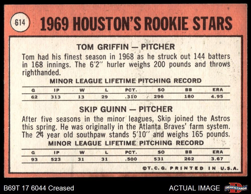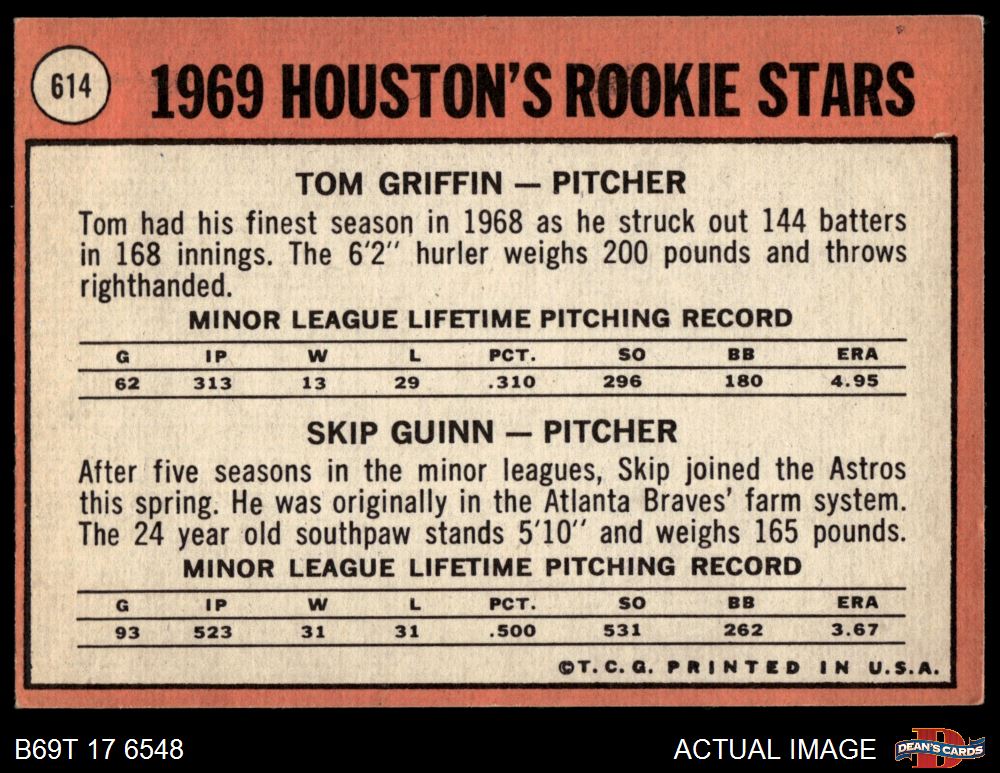 1969 Topps #614 - Tom Griffin / Skip Guinn Houston Rookies 3 - VG