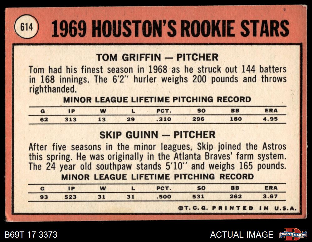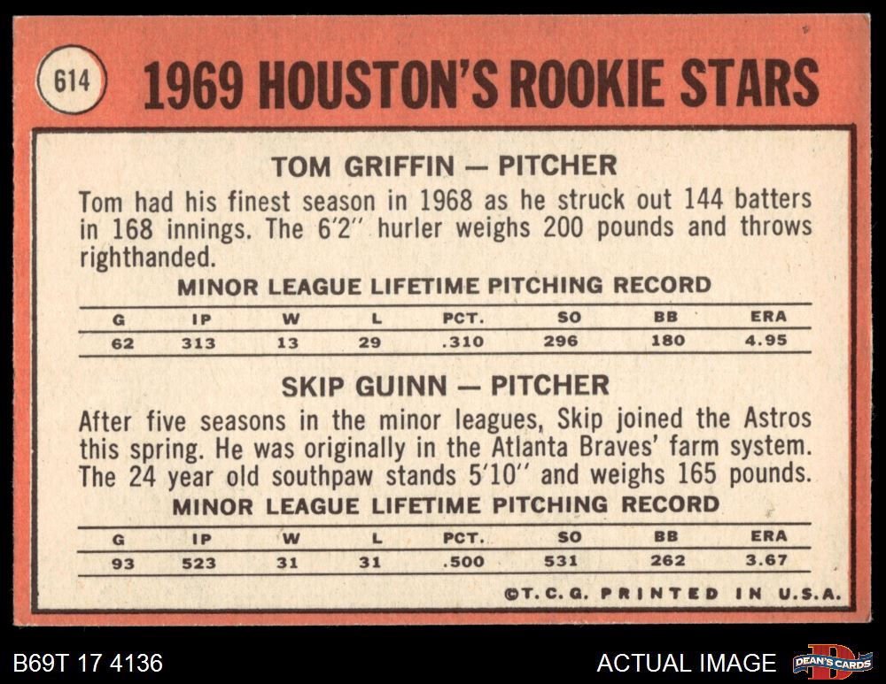 1969 Topps #614 - Tom Griffin / Skip Guinn Houston Rookies 4 - VG/EX