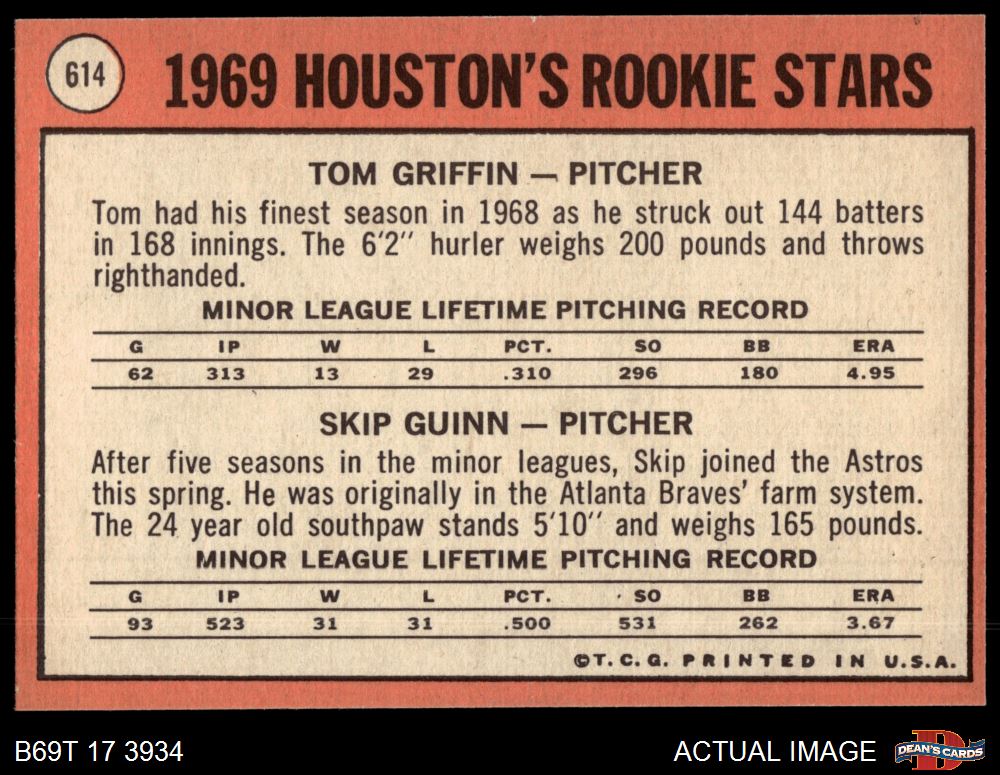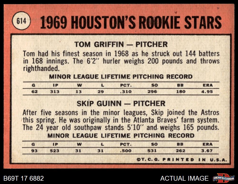 1969 Topps #614 - Tom Griffin / Skip Guinn Houston Rookies 6 - EX/MT