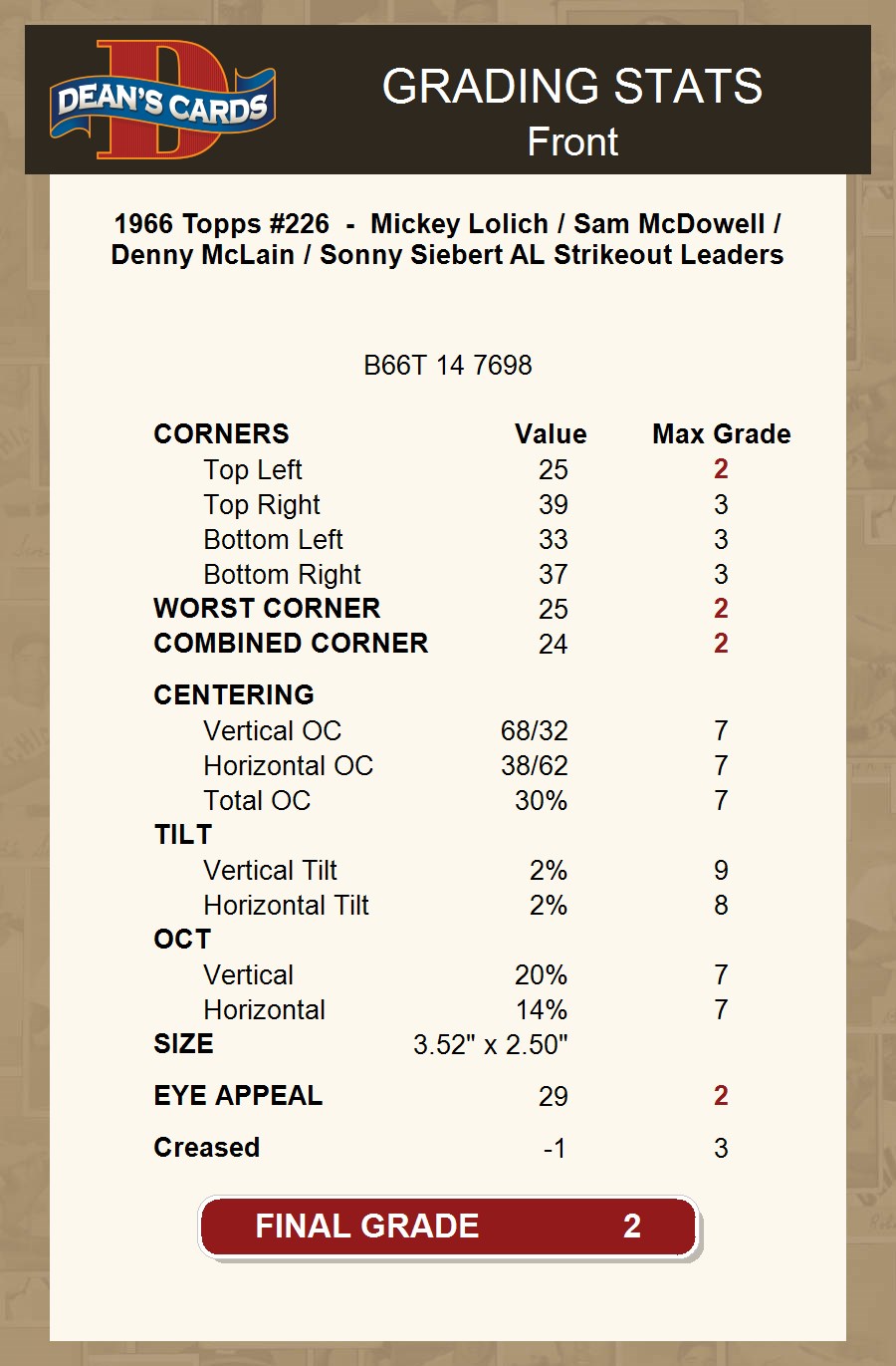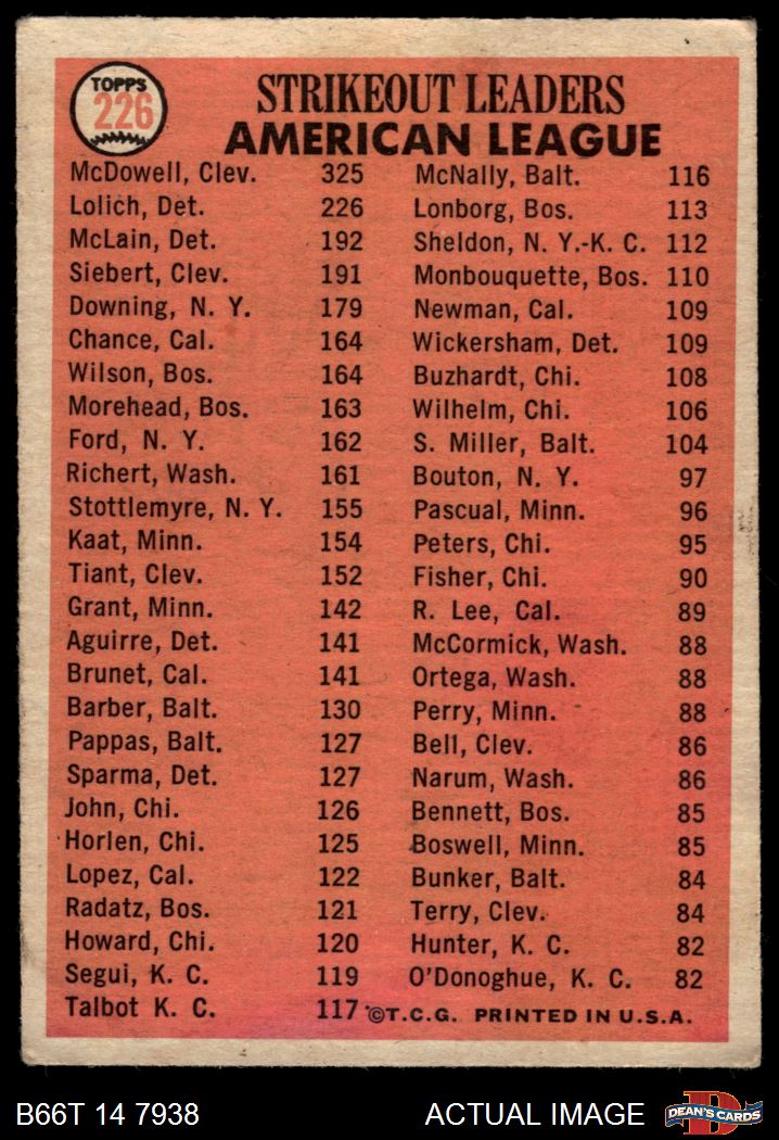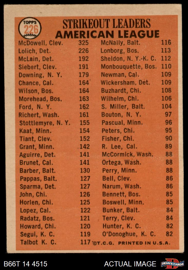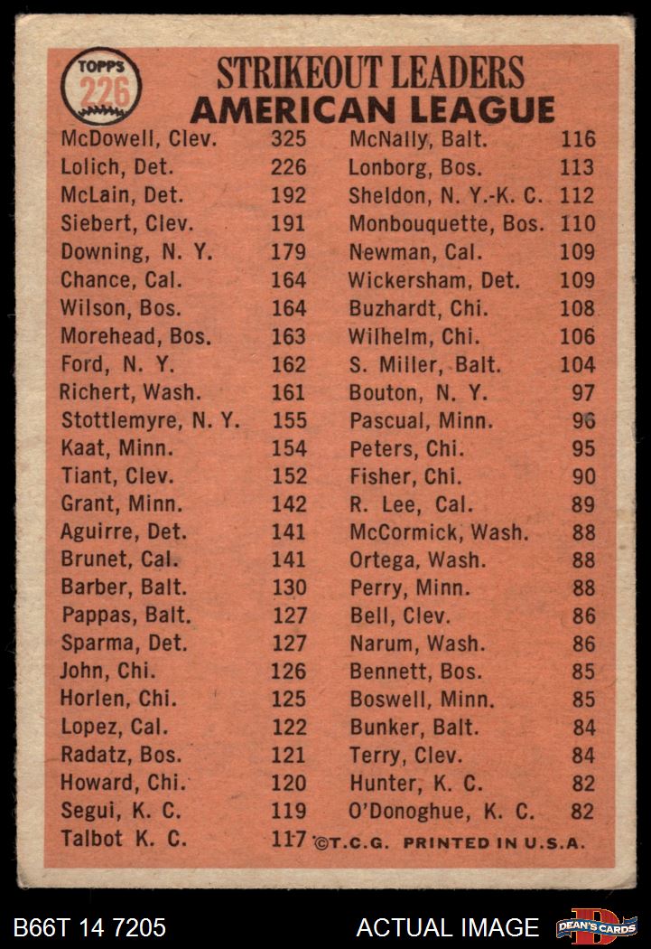 1966 Topps #226 - Mickey Lolich / Sam McDowell / Denny McLain / Sonny Siebert AL Strikeout Leaders 2 - GOOD