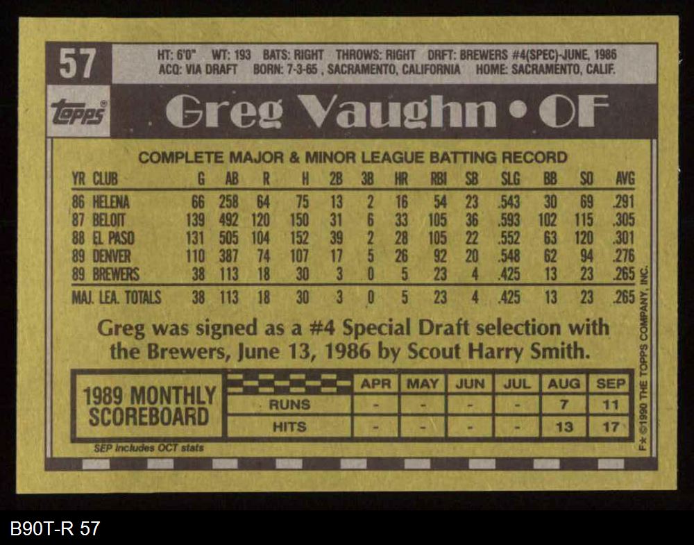 1990 Topps #57 Greg Vaughn