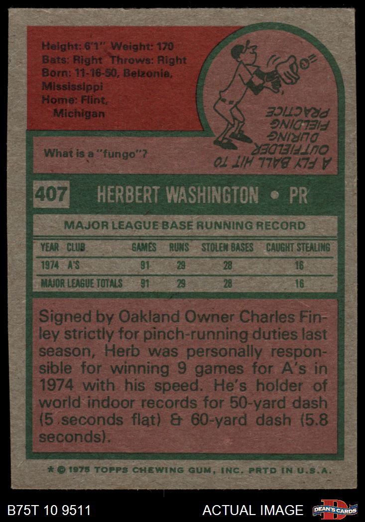 1975 Topps #407 Herb Washington 5 - EX