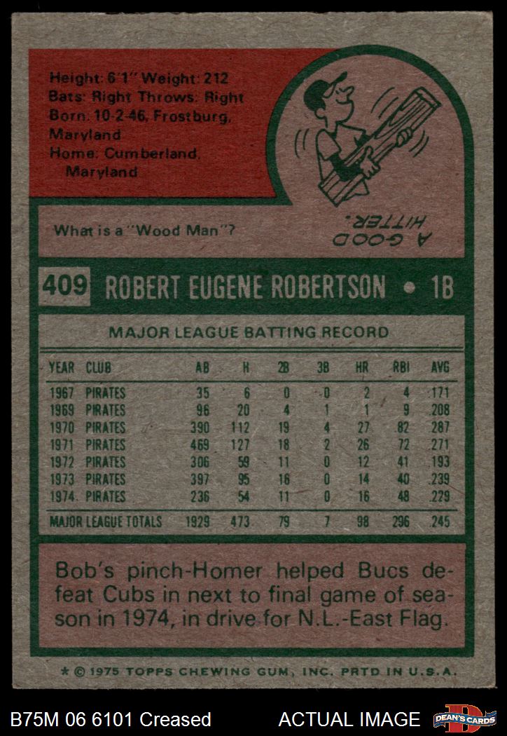 1975 Topps Mini #409 Bob Robertson Front Thumbnail