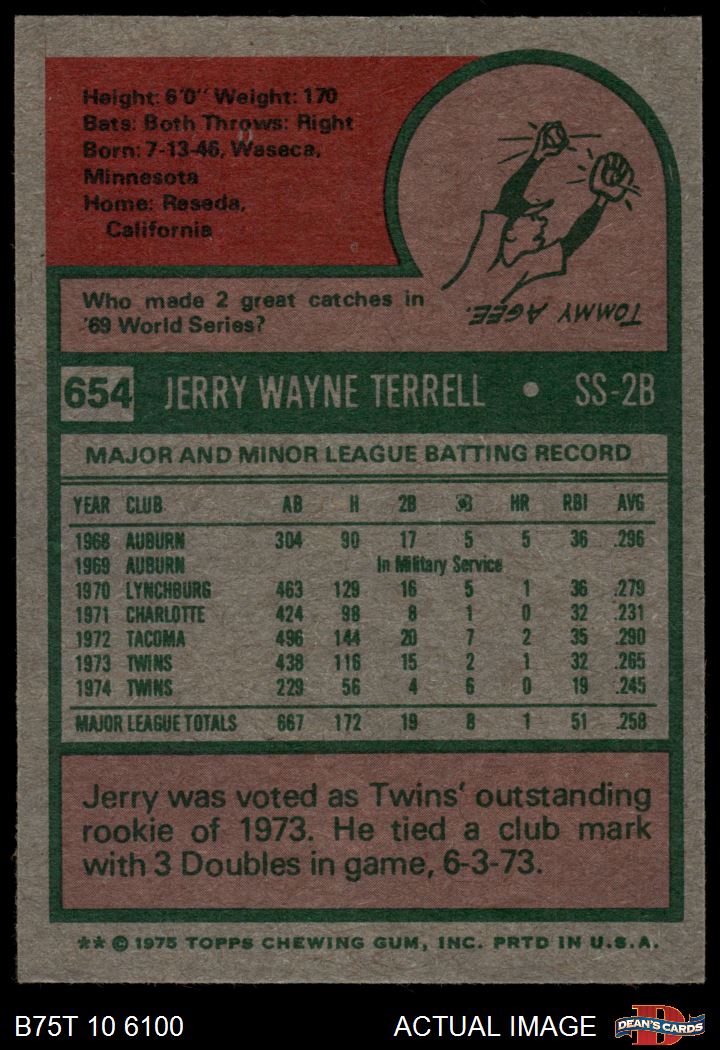 1975 Topps #654 Jerry Terrell 5.5 - EX+