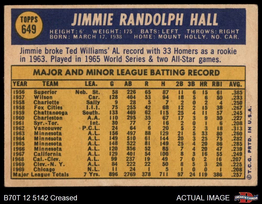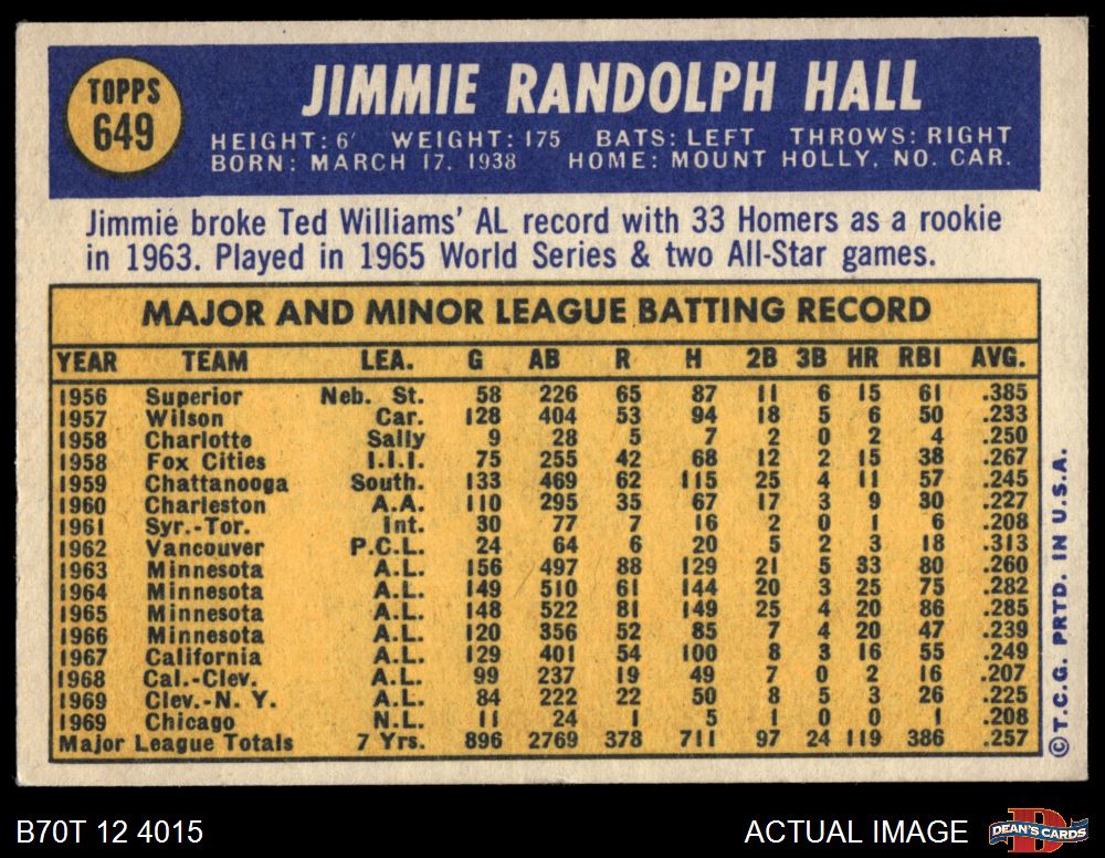 1970 Topps #649 Jimmie Hall