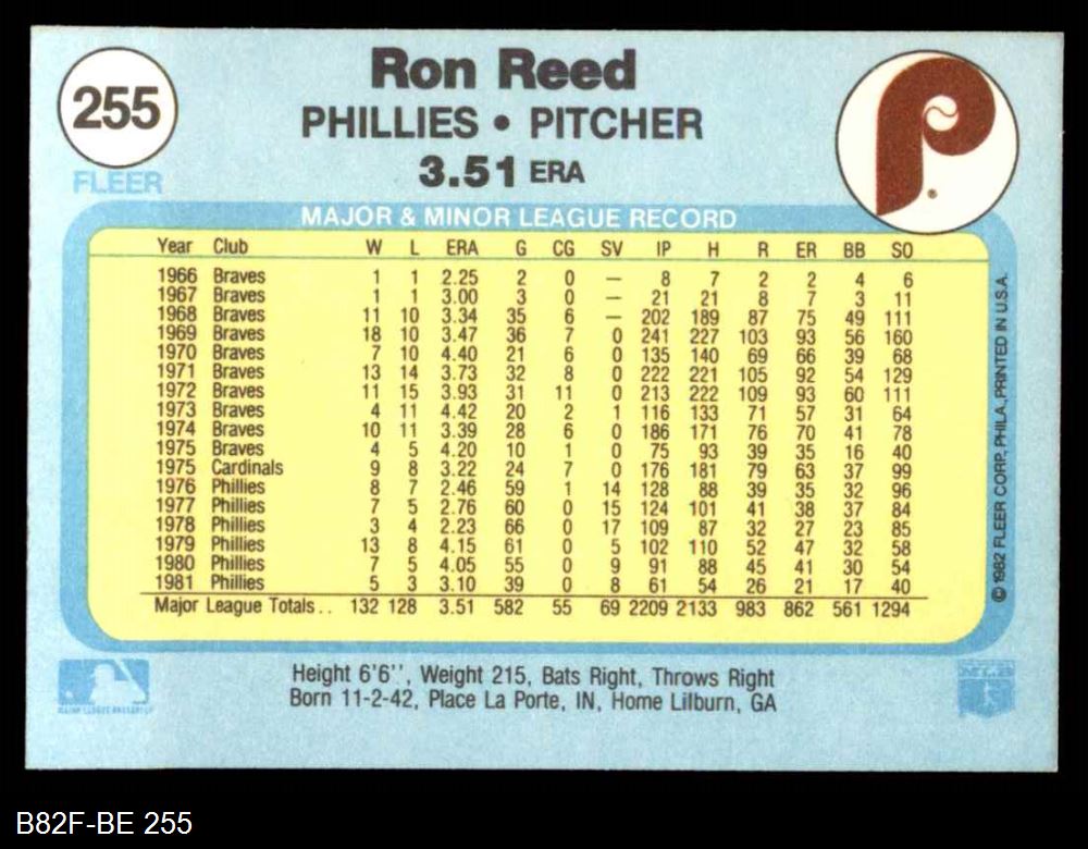 1982 Fleer #255 Ron Reed 8 - NM/MT