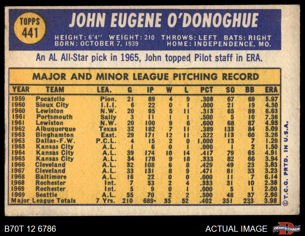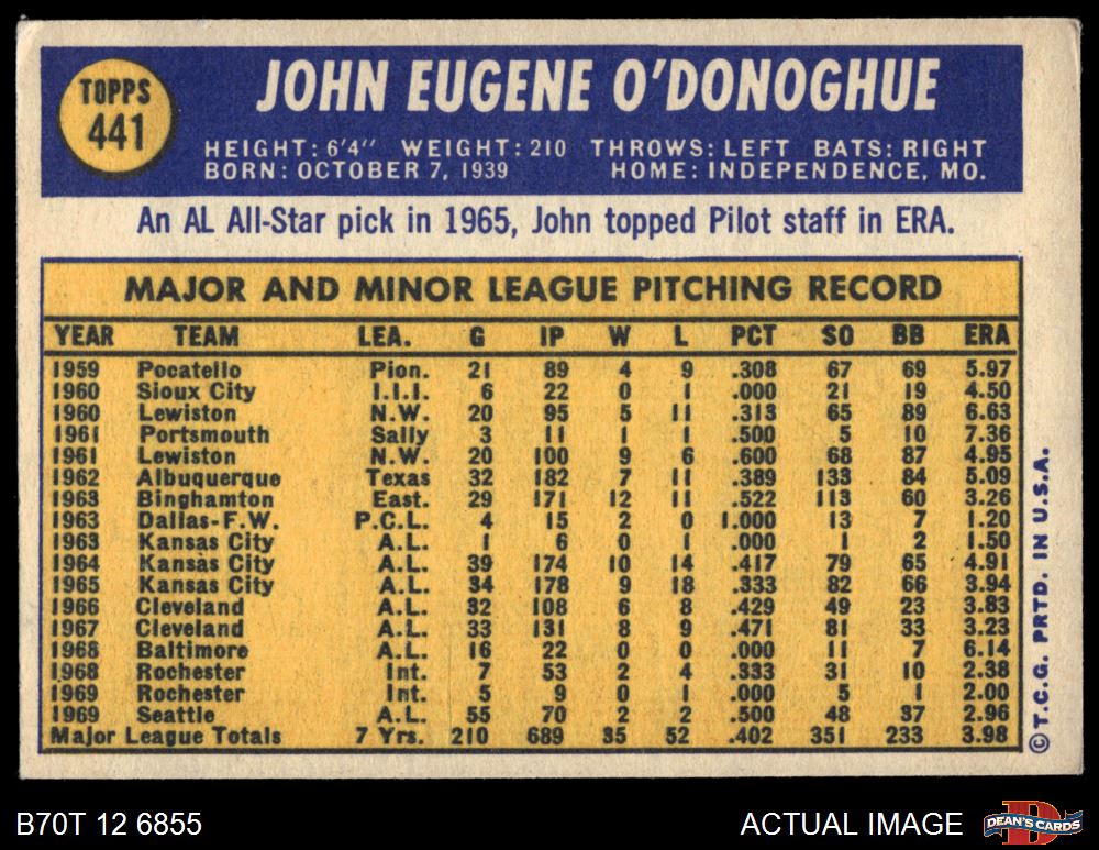 1970 Topps #441 John O'Donoghue 3 - VG