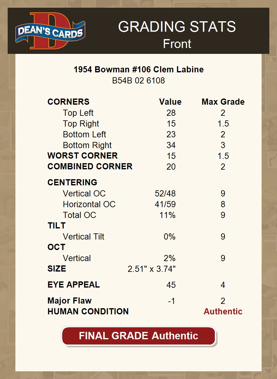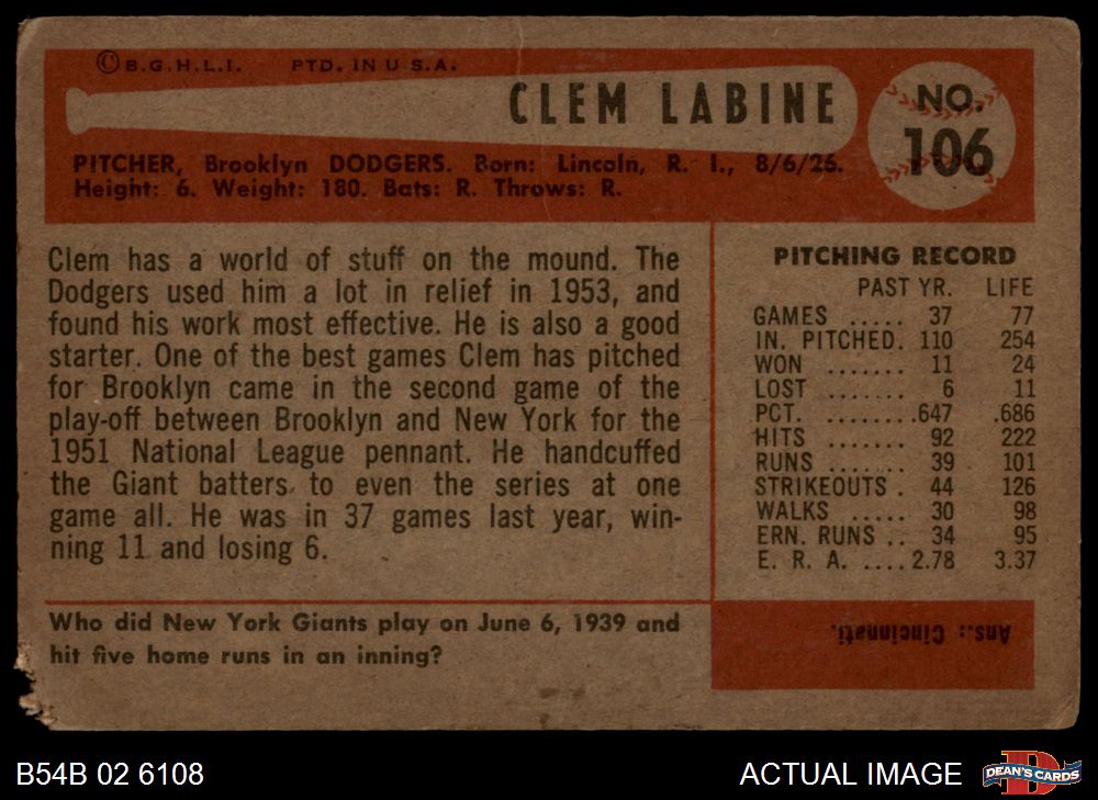 1954 Bowman #106 Clem Labine AUTHENTIC