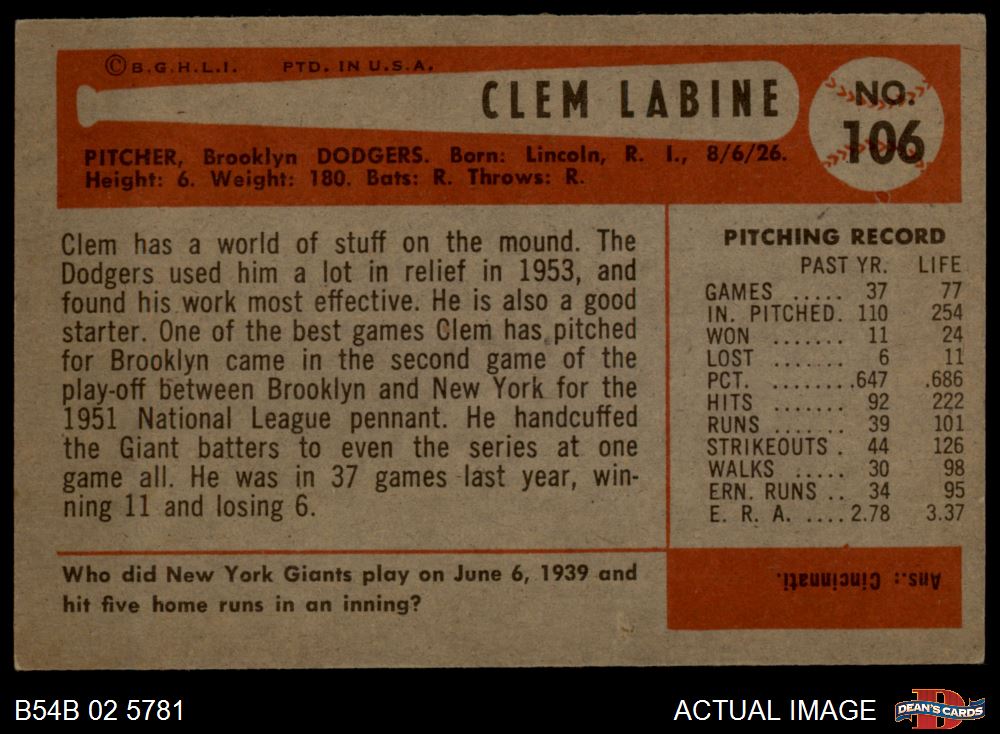 1954 Bowman #106 Clem Labine 4 - VG/EX