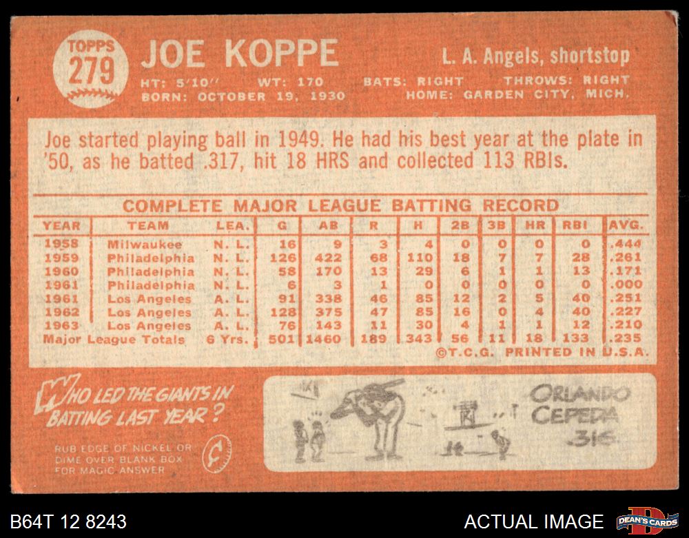 1964 Topps #279 Joe Koppe 3.5 - VG+