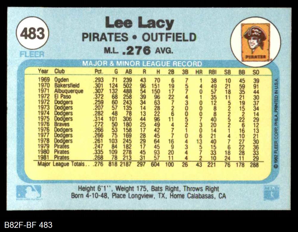 1982 Fleer #483 Lee Lacy