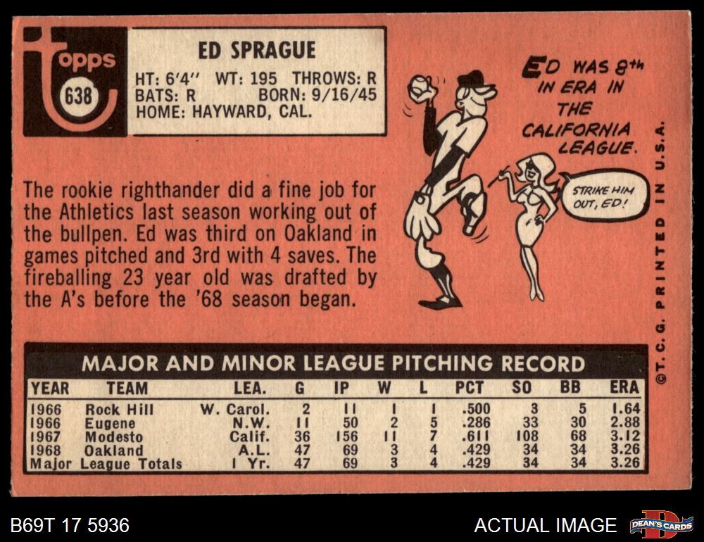1969 Topps #638 Ed Sprague 3 - VG