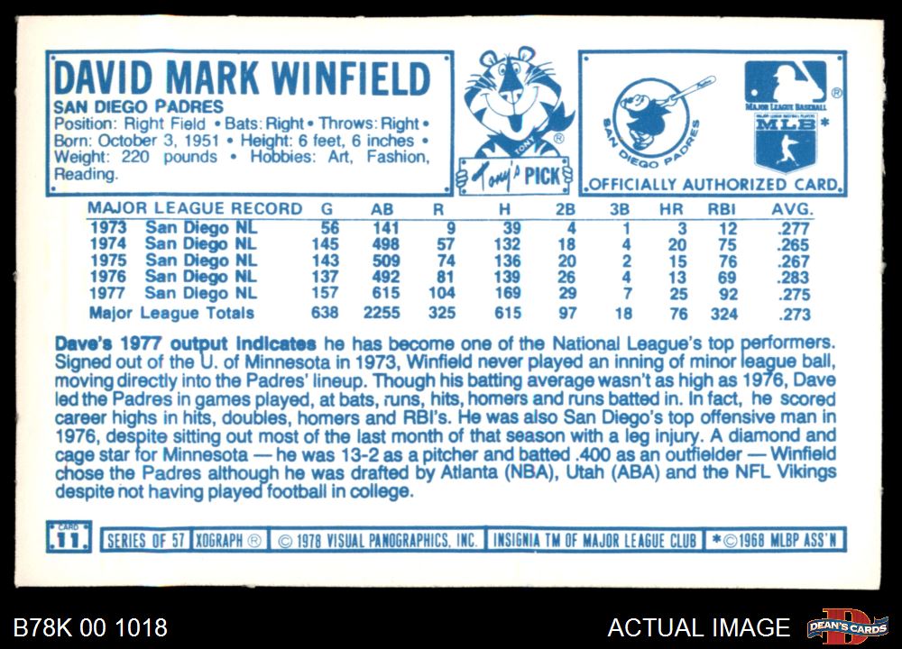 1978 Kellogg's #11 Dave Winfield 8 - NM/MT