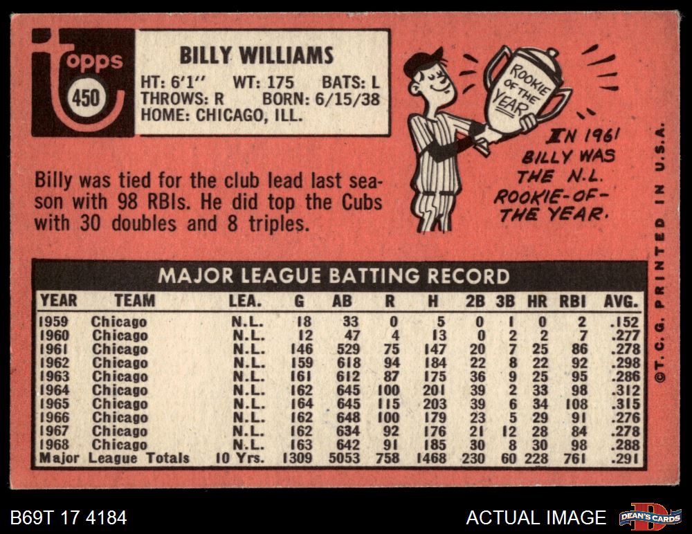 1969 Topps #450 Billy Williams 4 - VG/EX