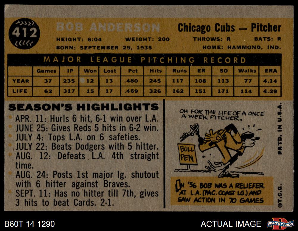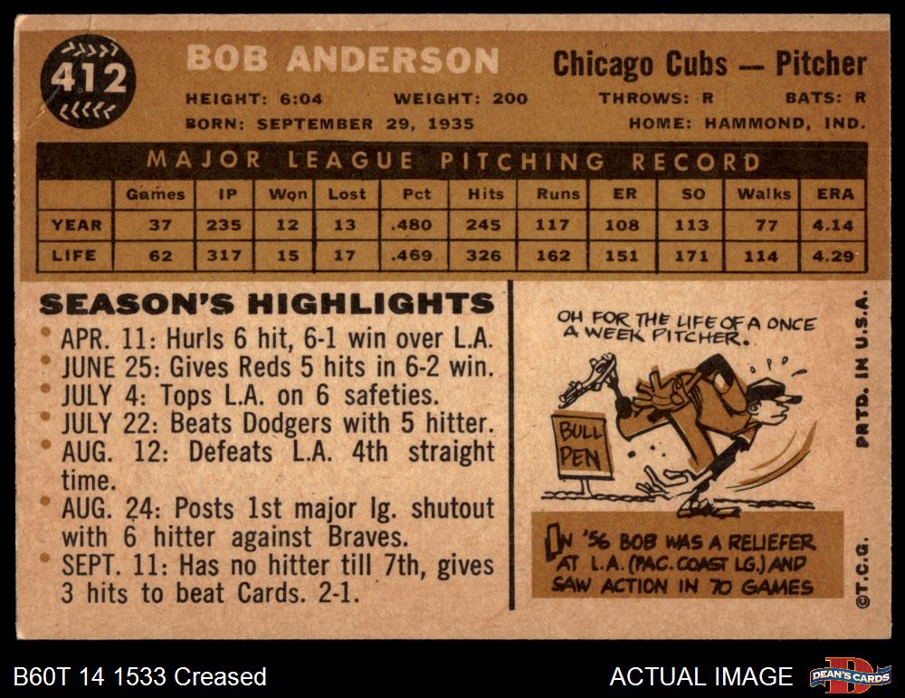 1960 Topps #412 Bob Anderson Front Thumbnail