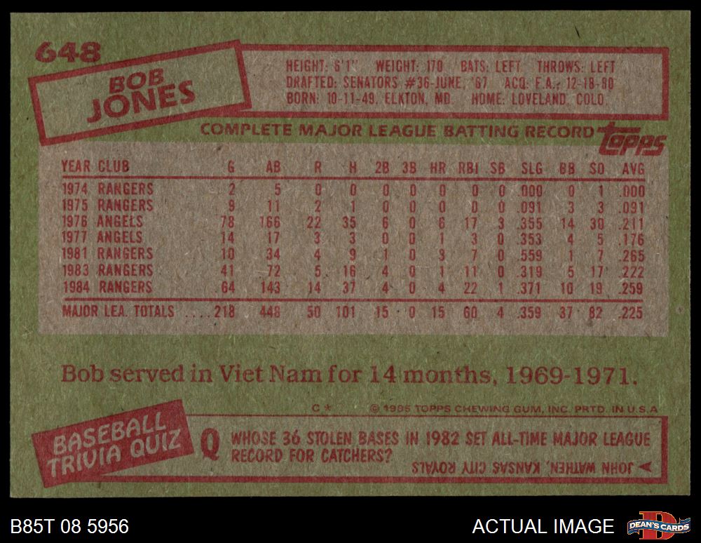 1985 Topps #648 Bob Jones 6 - EX/MT