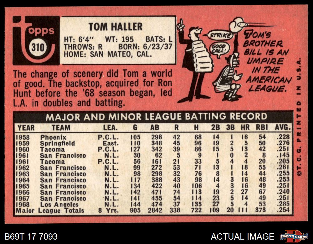 1969 Topps #310 Tom Haller 6 - EX/MT