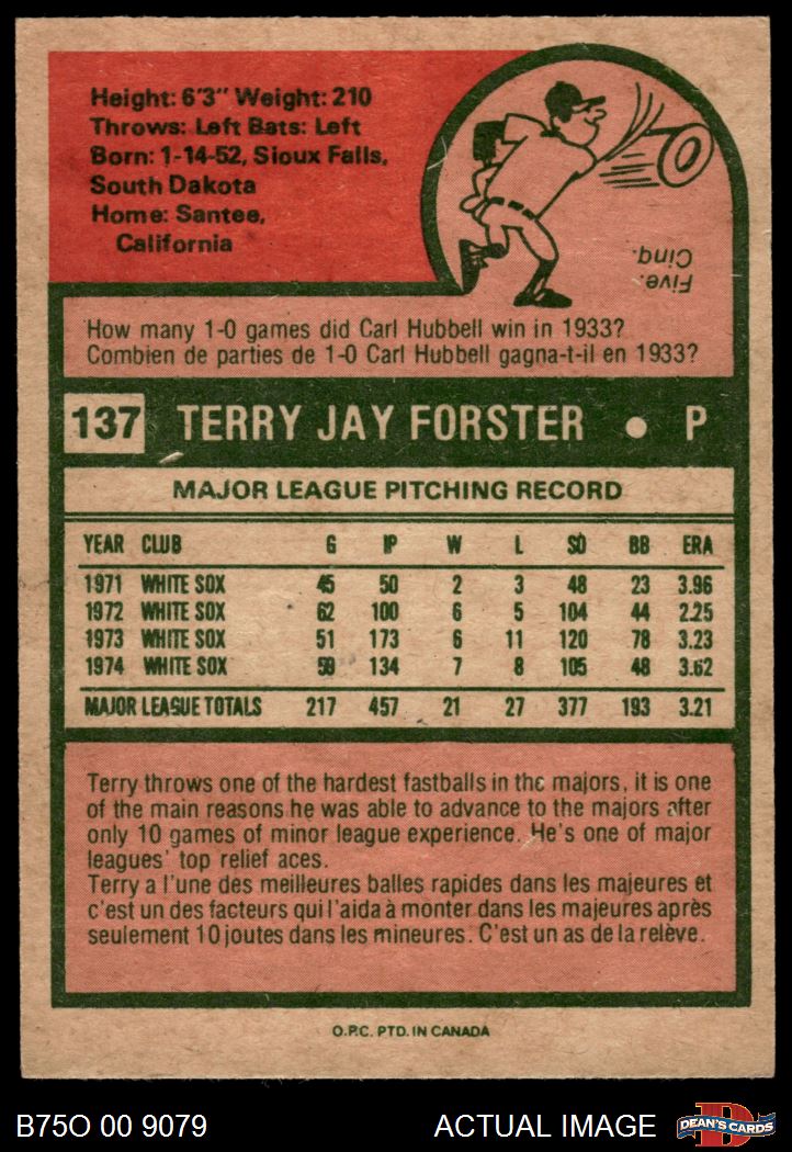 1975 O-Pee-Chee #137 Terry Forster 4.5 - VG/EX+