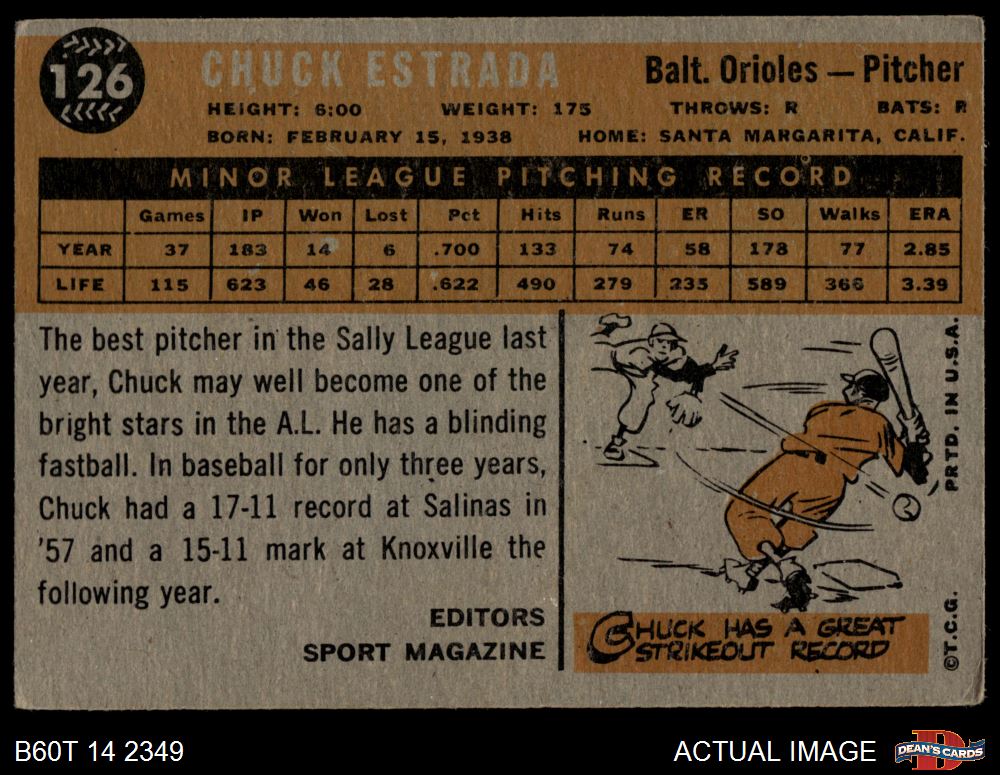 1960 Topps #126 - Chuck Estrada Rookie Star 2 - GOOD
