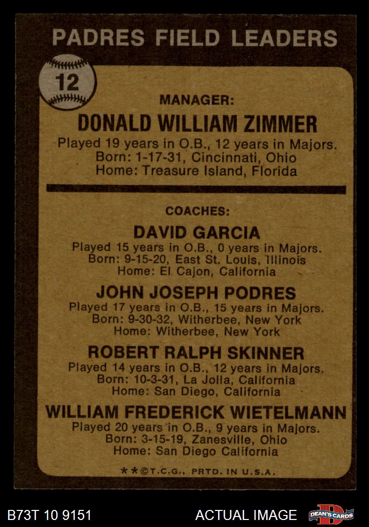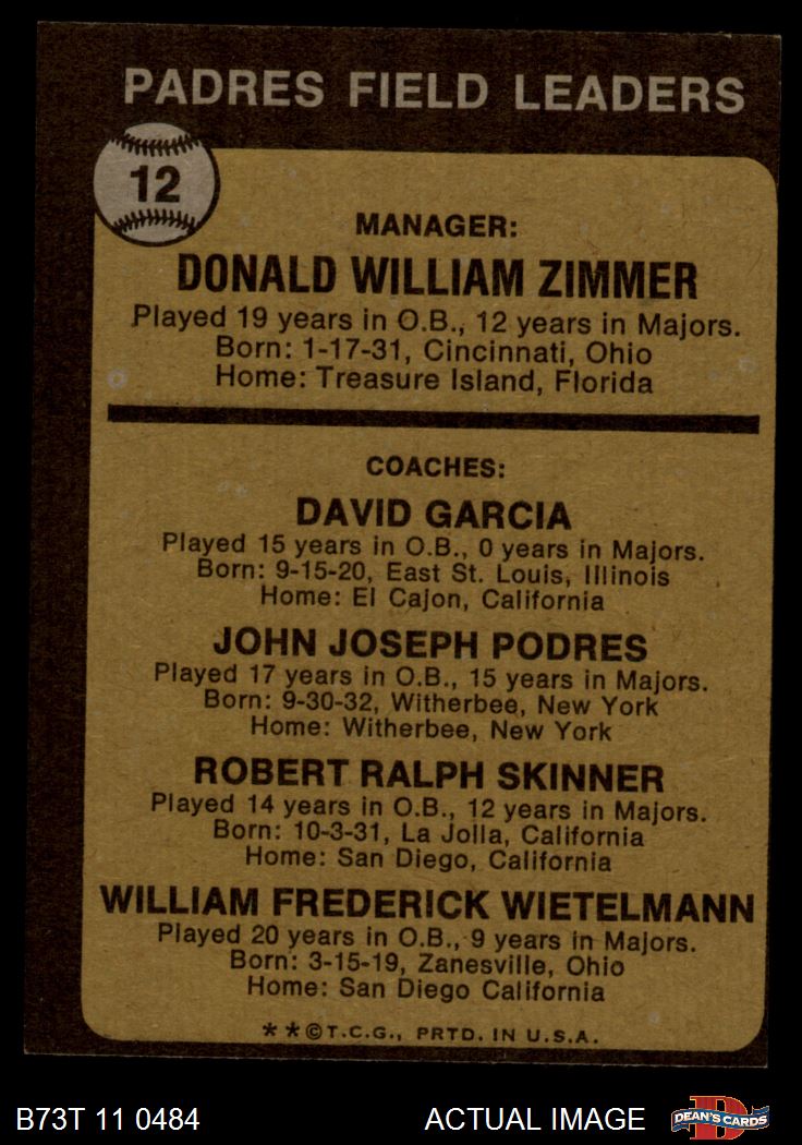 1973 Topps Baseball Cards (11,485 available)1973 Topps Padres (607 available)