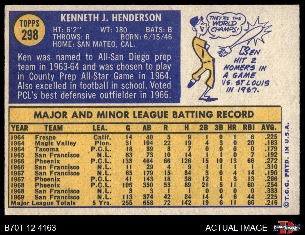1970 Topps #298 Ken Henderson 5 - EX