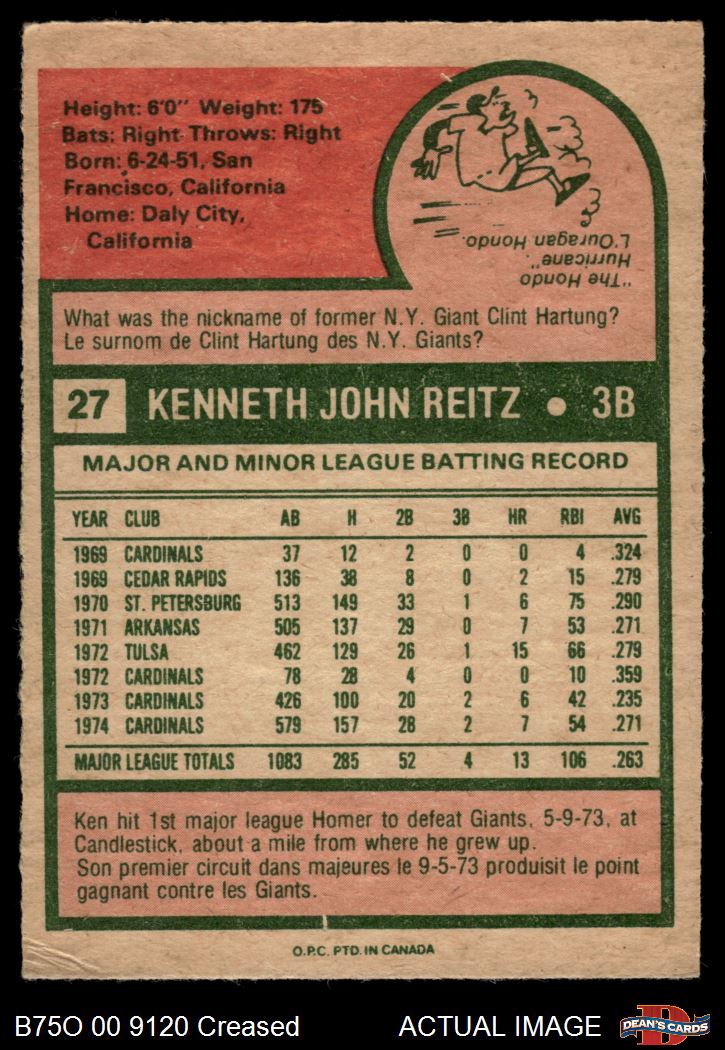 1975 O-Pee-Chee #27 Ken Reitz 3 - VG
