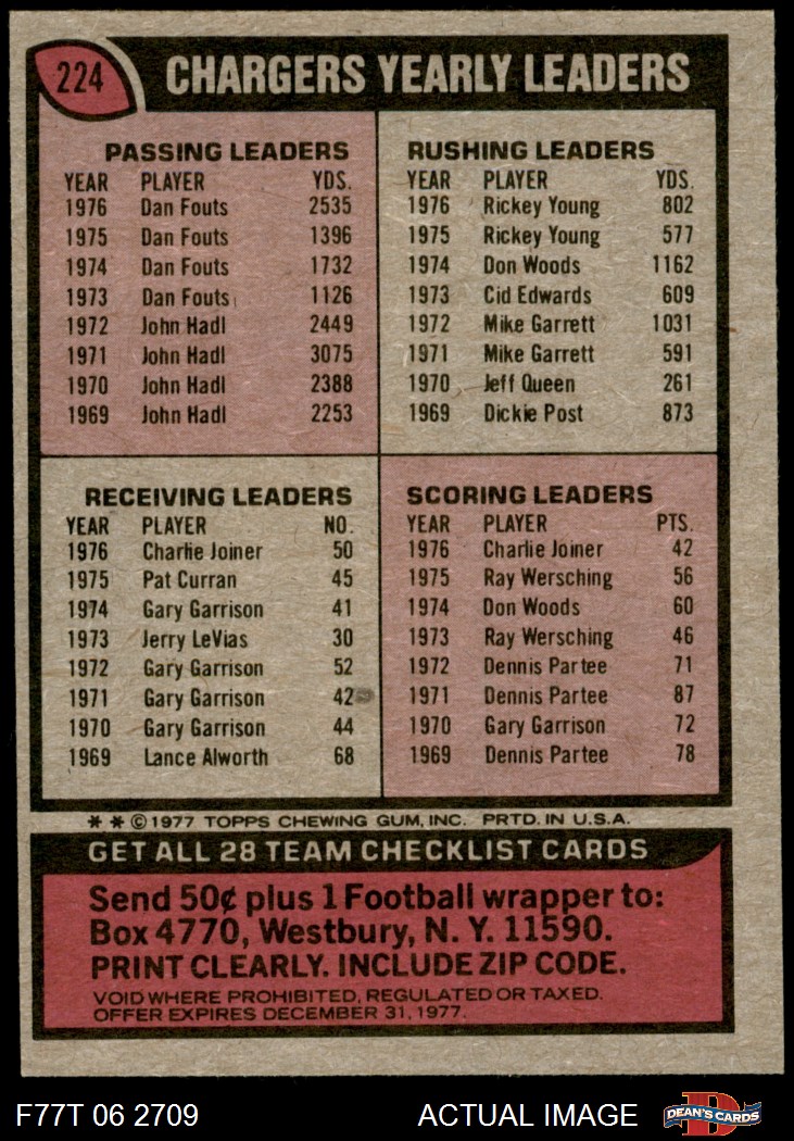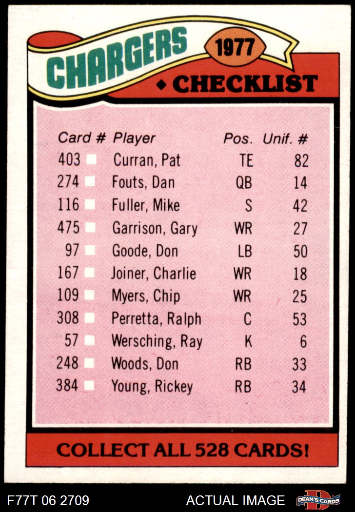 1977 Topps #224 Chargers Team Checklist 5 - EX