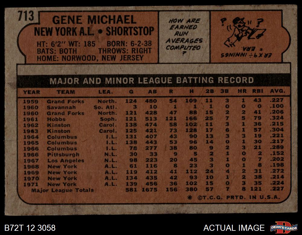 1972 Topps #713 Gene Michael 1.5 - FAIR