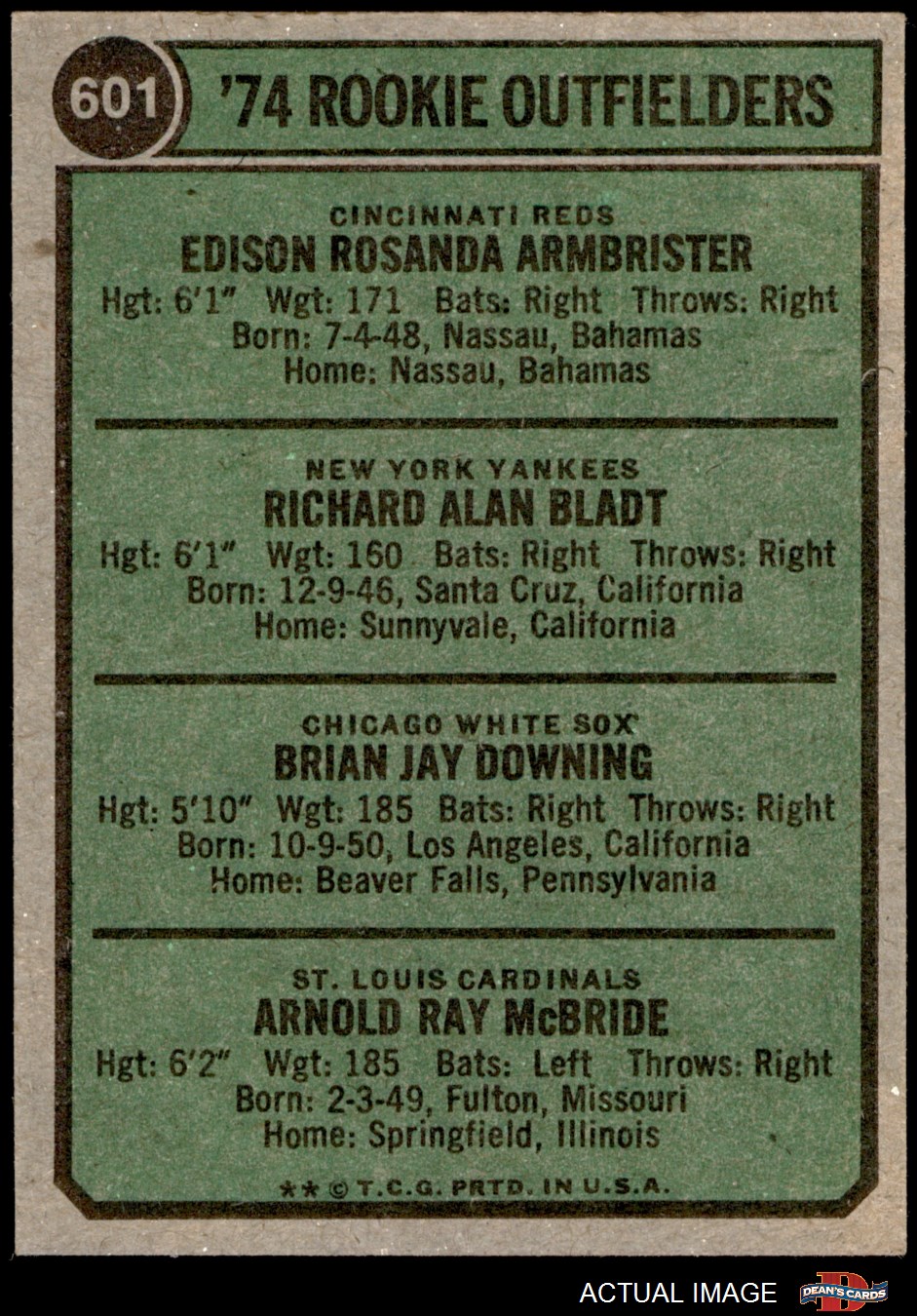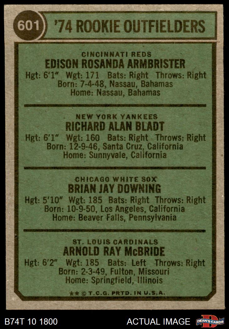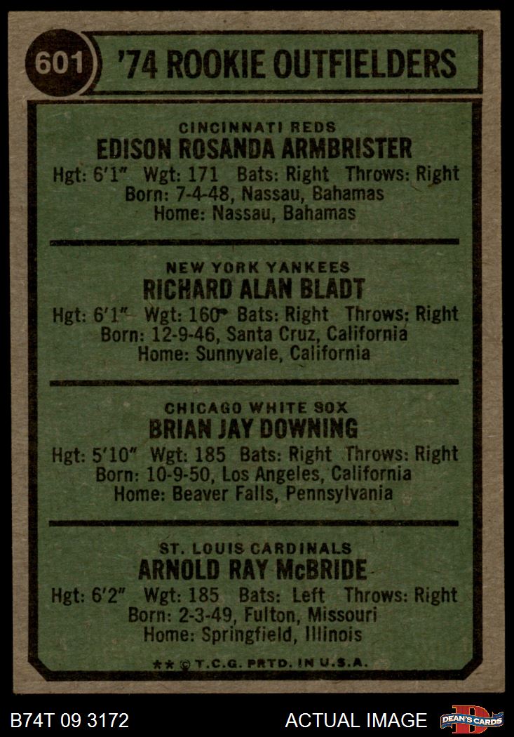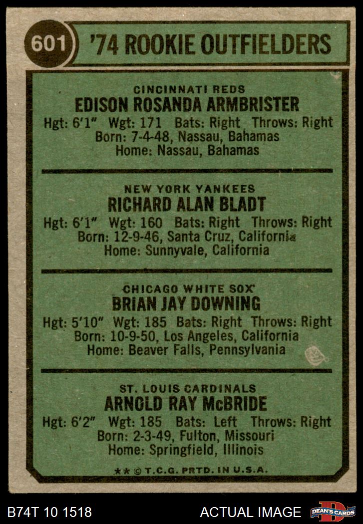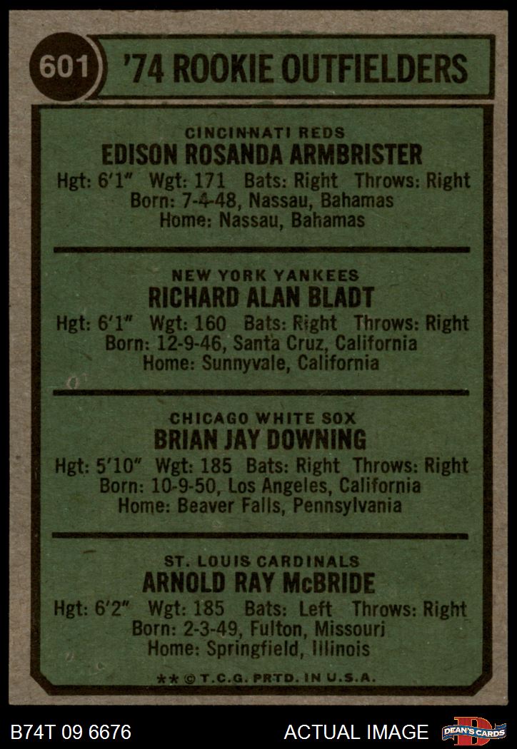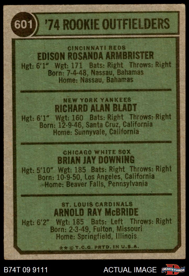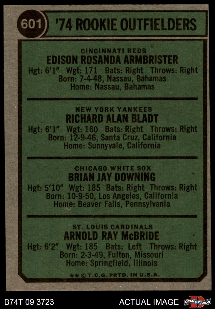 1974 Topps #601 Rookie Outfielders