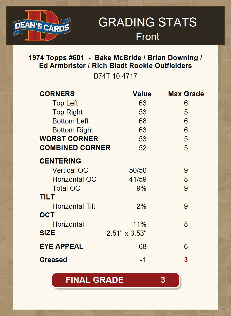 1974 Topps #601 - Bake McBride / Brian Downing / Ed Armbrister / Rich Bladt Rookie Outfielders 3 - VG