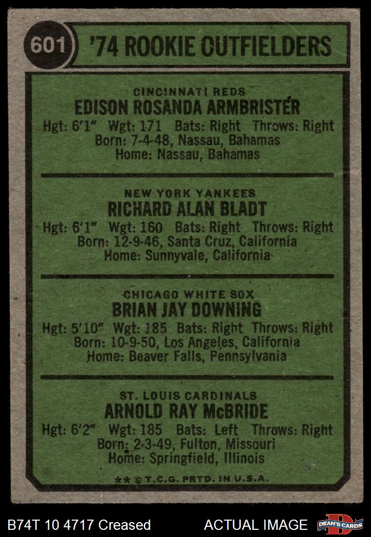 1974 Topps #601  -  Bake McBride / Brian Downing / Ed Armbrister / Rich Bladt Rookie Outfielders Front Thumbnail