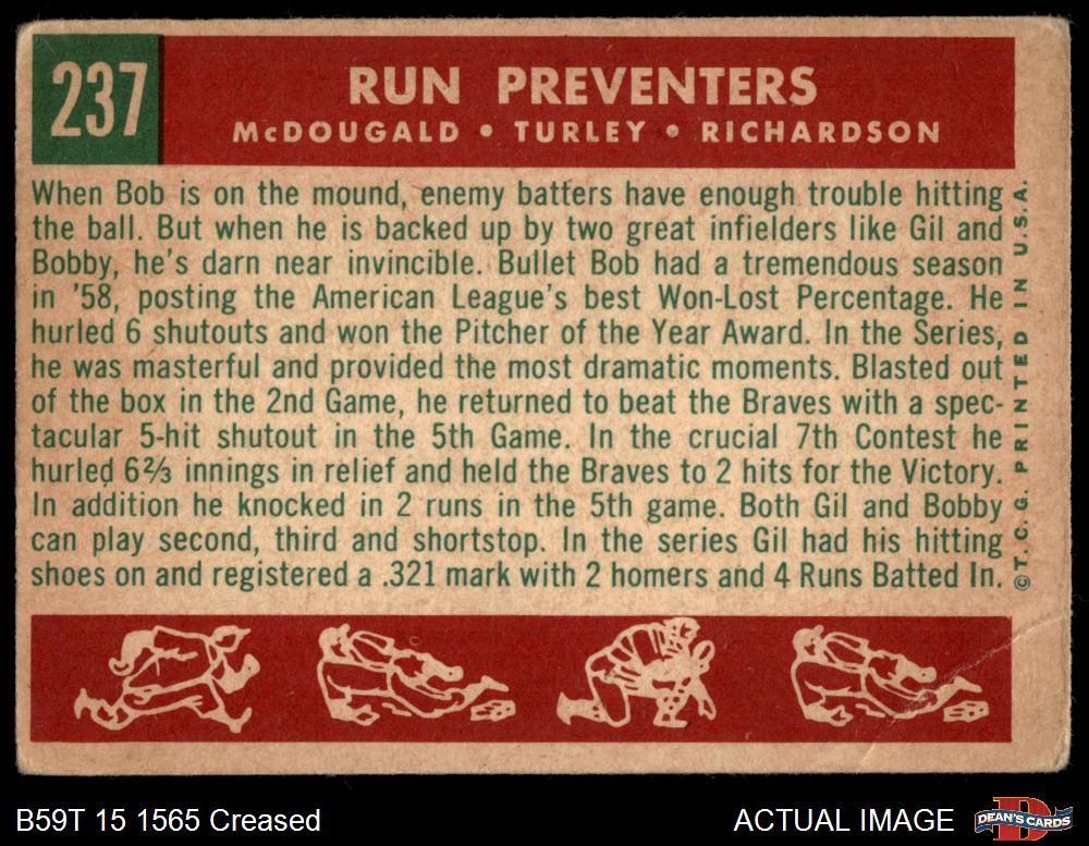 1959 Topps #237 - Gil McDougald / Bob Turley / Bobby Richardson Run Preventers 1.5 - FAIR