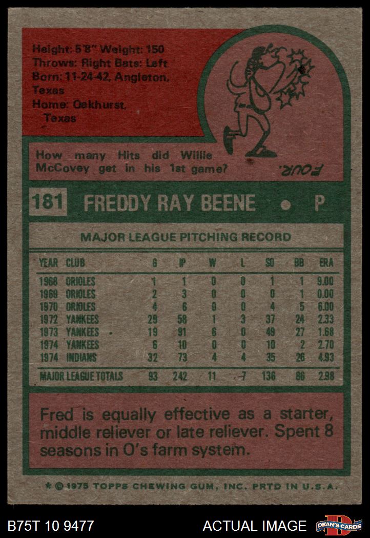 1975 Topps #181 Fred Beene 4.5 - VG/EX+