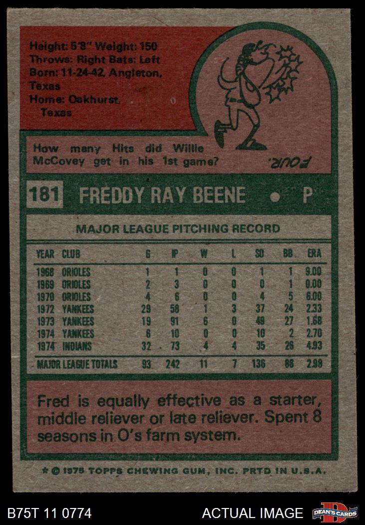 1975 Topps #181 Fred Beene 5 - EX