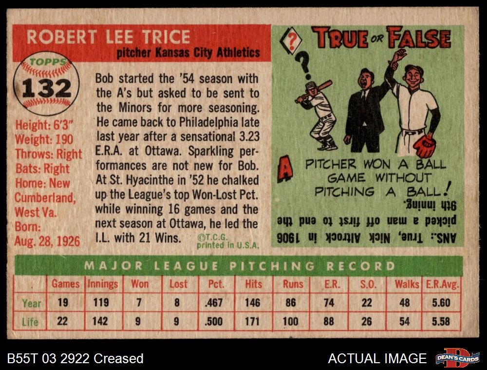 1955 Topps #132 Bob Trice 2 - GOOD