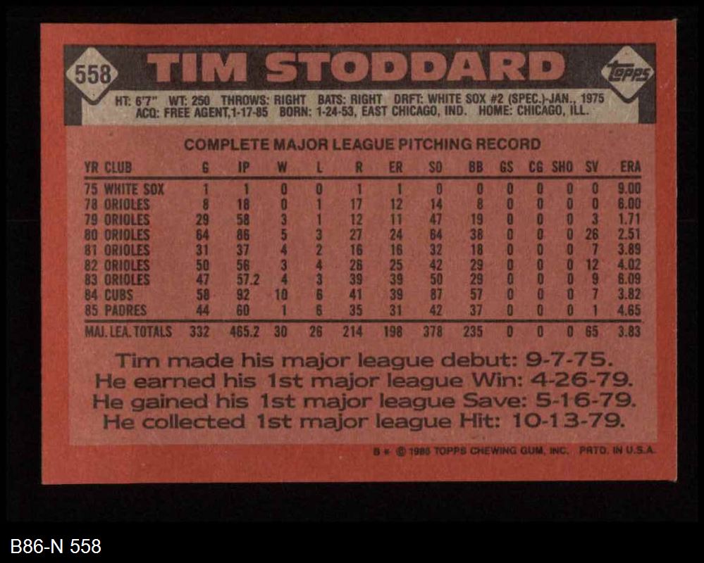 1986 Topps #558 Tim Stoddard