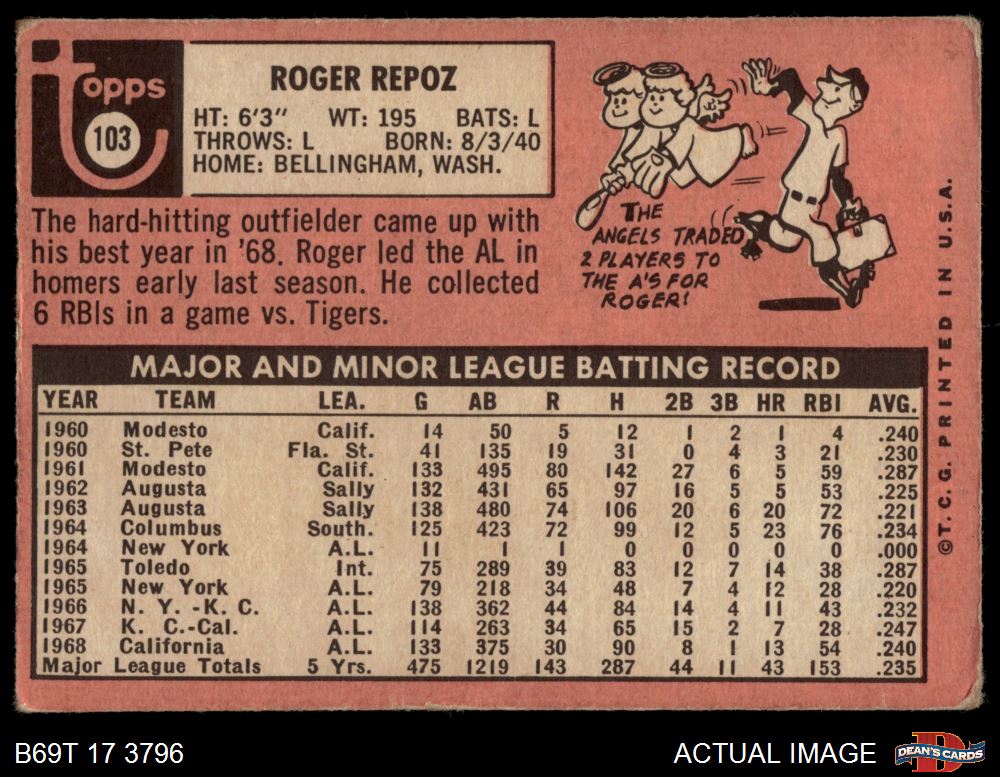 1969 Topps #103 Roger Repoz 2 - GOOD