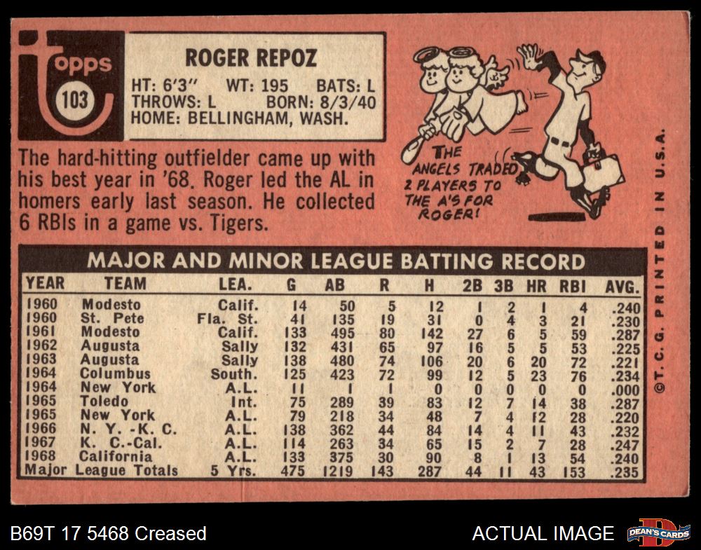 1969 Topps #103 Roger Repoz Front Thumbnail