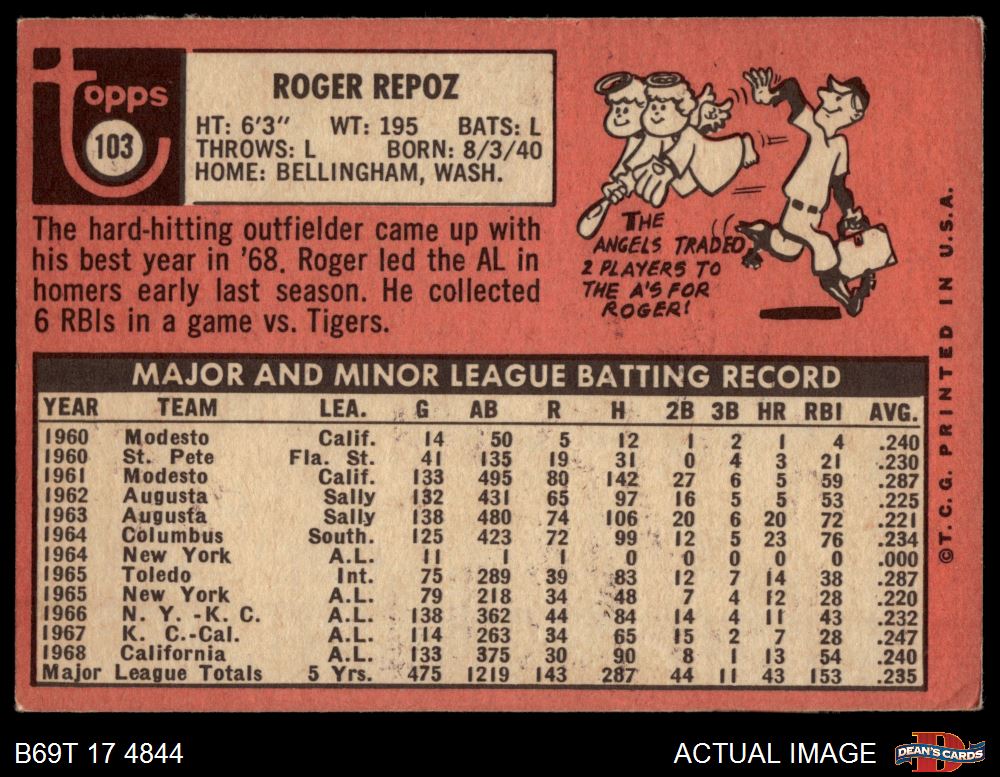 1969 Topps #103 Roger Repoz 4 - VG/EX