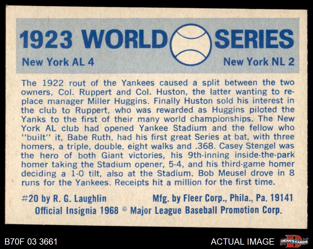 1970 Fleer World Series #20 - Babe Ruth 1923 Yankees vs. Giants 8 - NM/MT