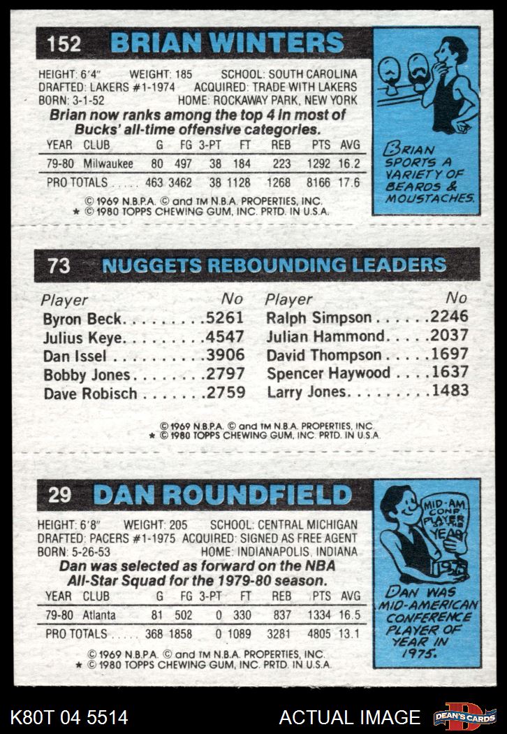 1980 Topps - Dan Roundfield / Dan Issel / Brian Winters 29 / 73 / 152 5 - EX