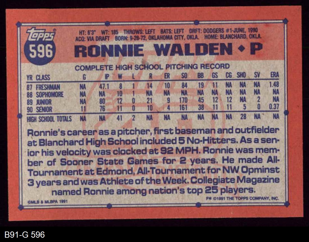 1991 Topps #596 Ronnie Walden 8 - NM/MT