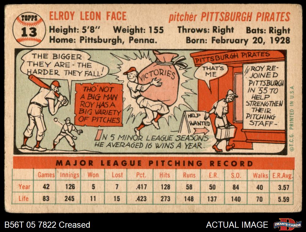 1956 Topps #13 Roy Face 2 - GOOD