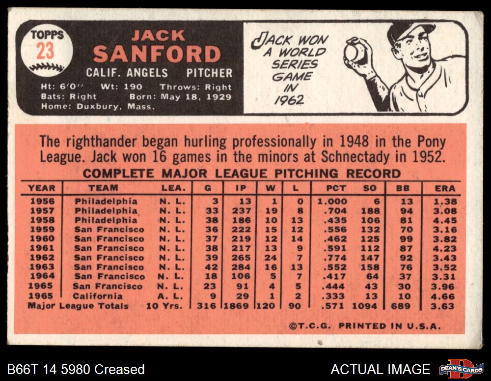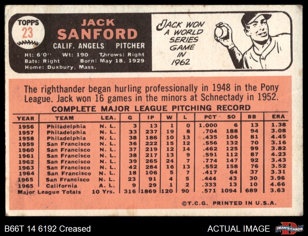 1966 Topps #23 Jack Sanford