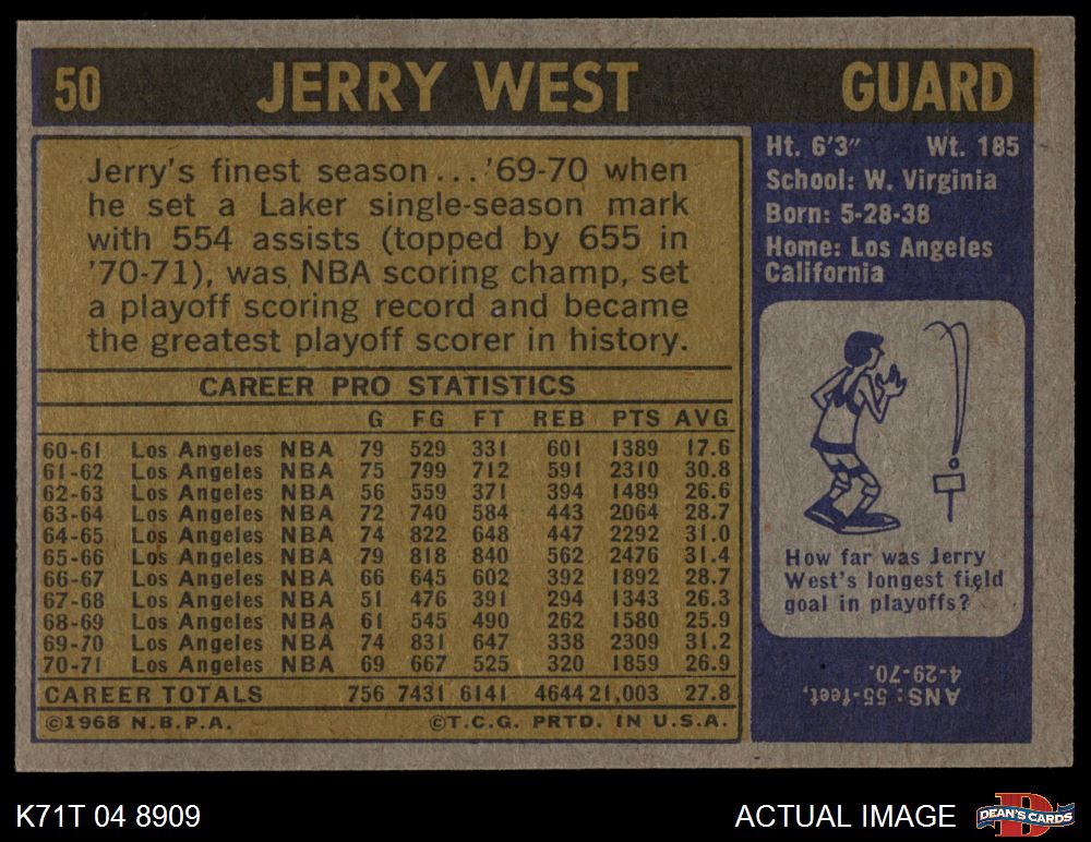 1971 Topps #50 Jerry West 5 - EX