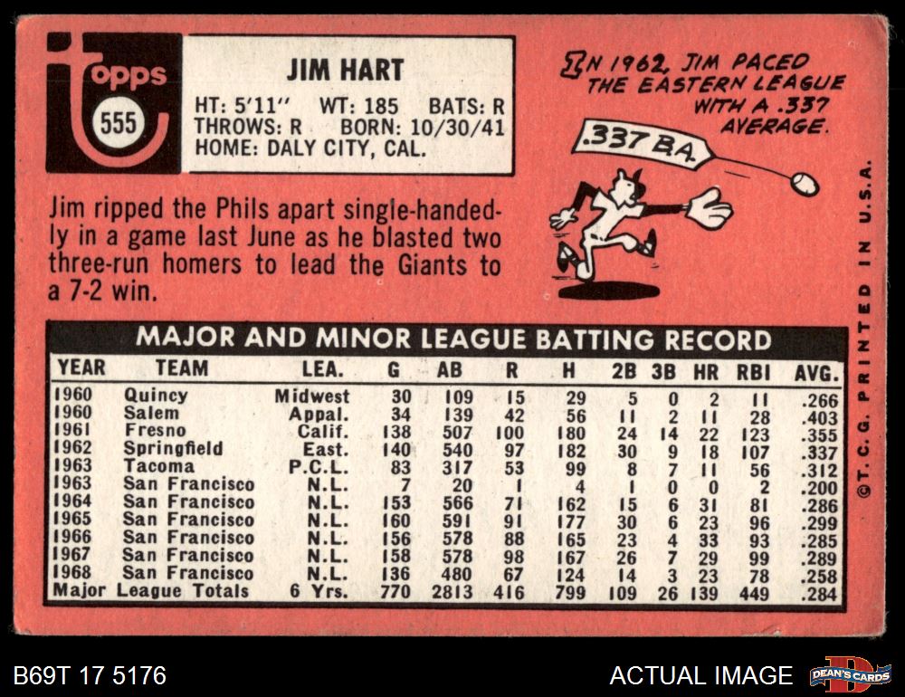 1969 Topps #555 Jim Hart 1.5 - FAIR