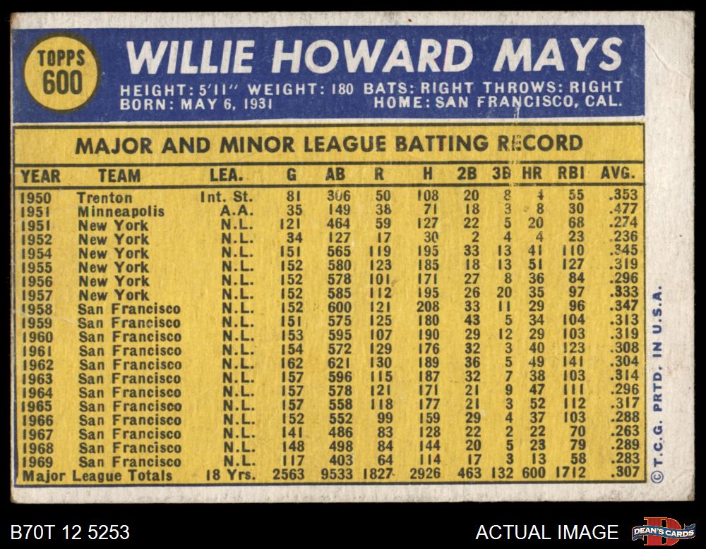 1970 Topps #600 Willie Mays 1.5 - FAIR