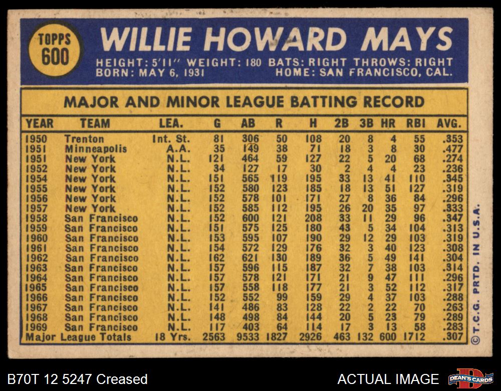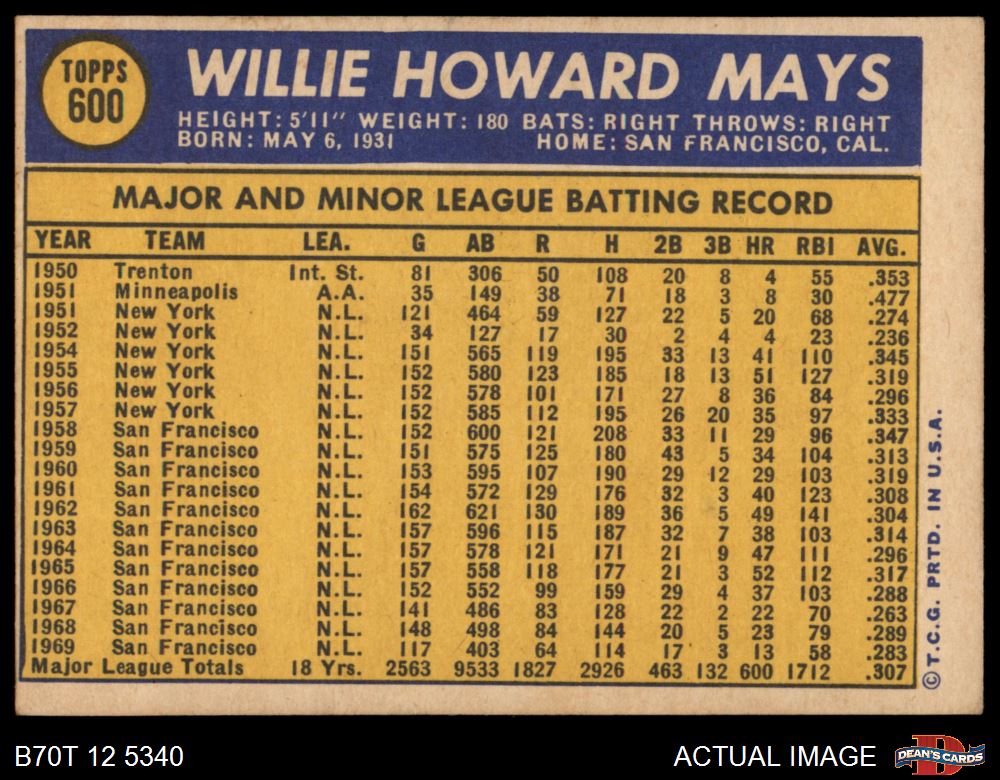 1970 Topps #600 Willie Mays 3 - VG