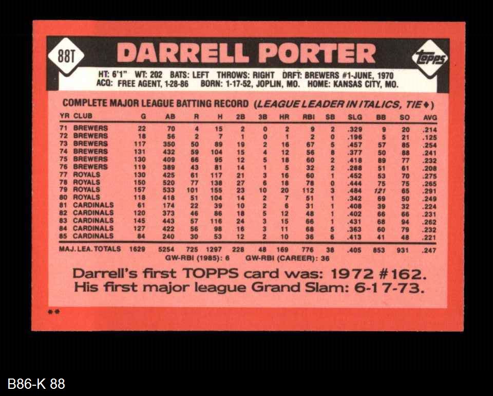 1986 Topps Traded #88 T Darrell Porter